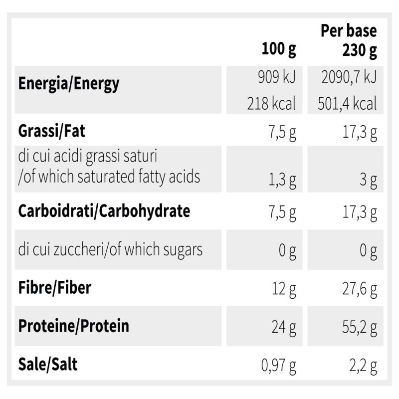 Durata conservazione: 45 giorni a temperatura ambiente