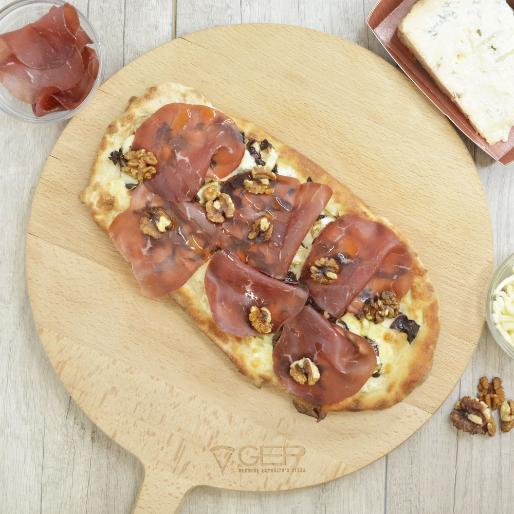 Base bianca con mozzarella, bresaola, noci, gorgonzola e radicchio fresco