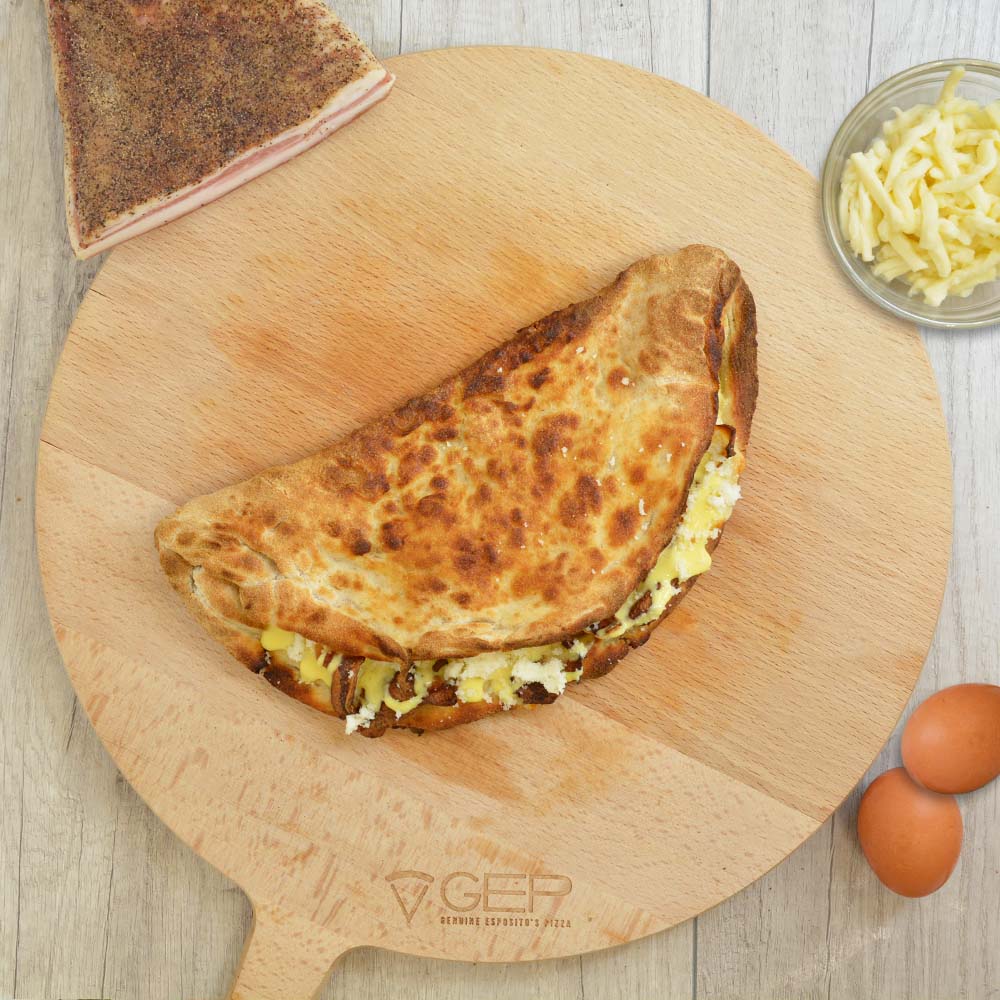 Ripiena di salsa all'uovo, pecorino romano, guanciale e pepe
