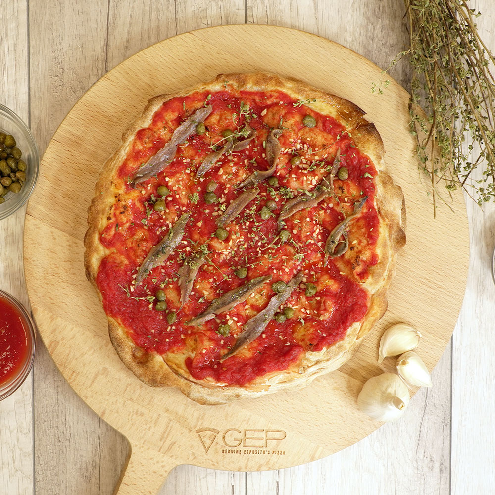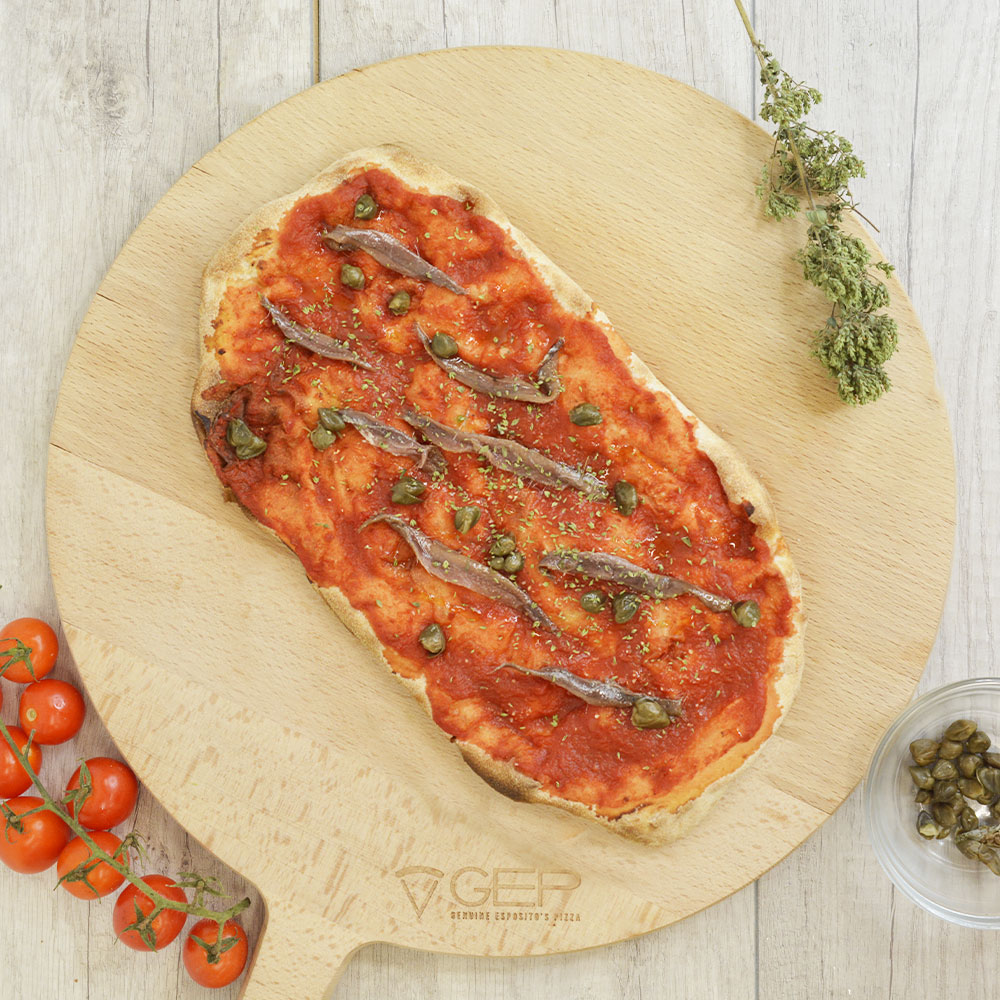 Base rossa con origano, aglio, capperi e alici