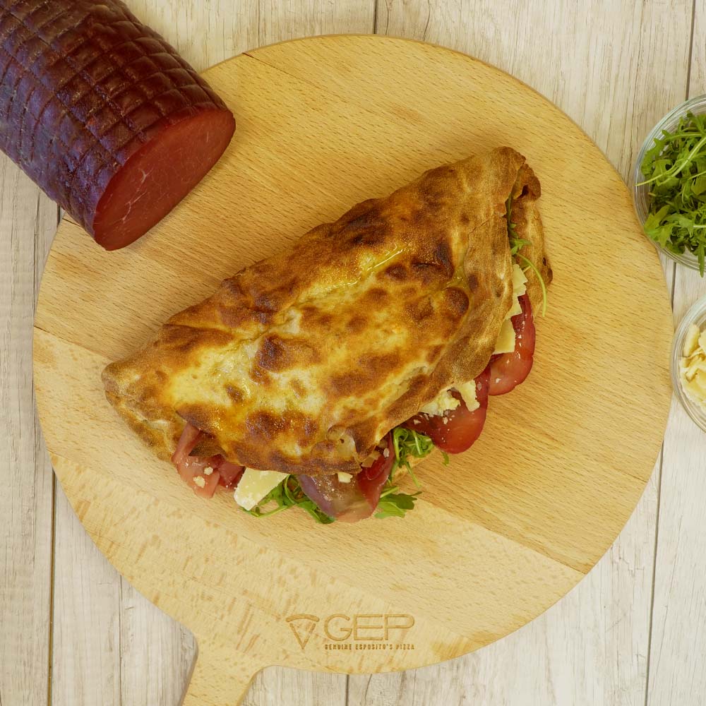 Ripiena di bresaola, rucola, scaglie di grana e mozzarella